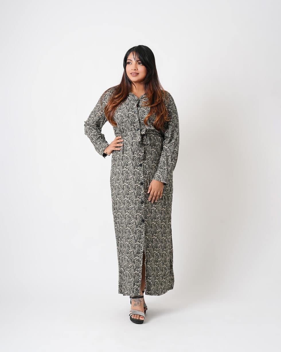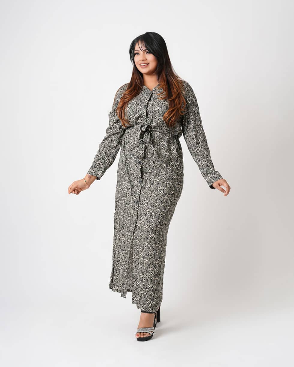 Linen Grey Floral Shirt Dress